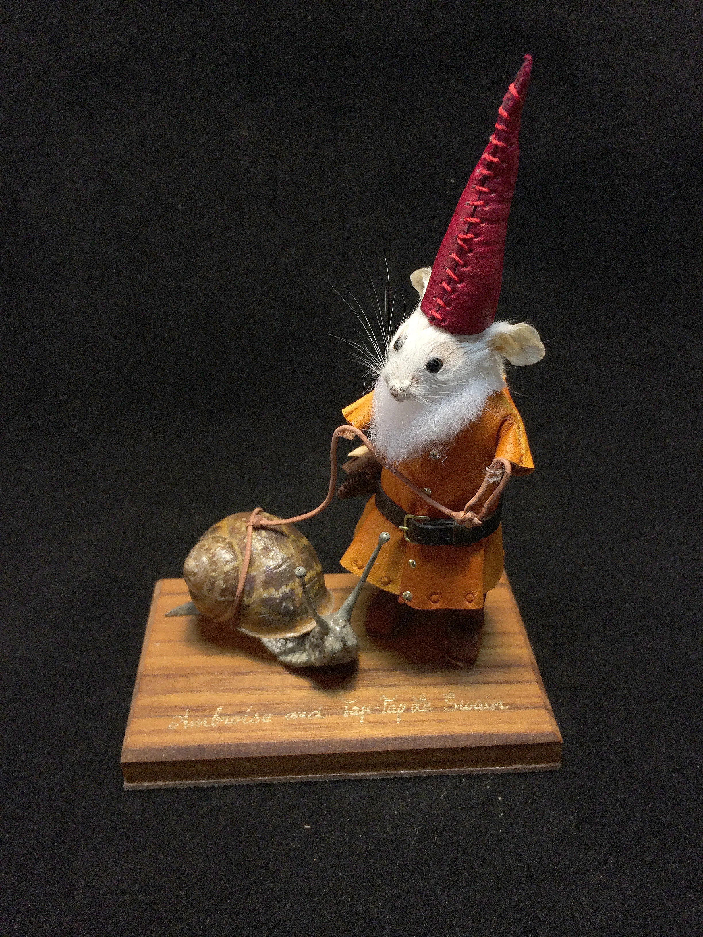 Adorable garden gnomes. For once, they each have a completely different name, and don't share the same last name. Each has their own accessory and pose.